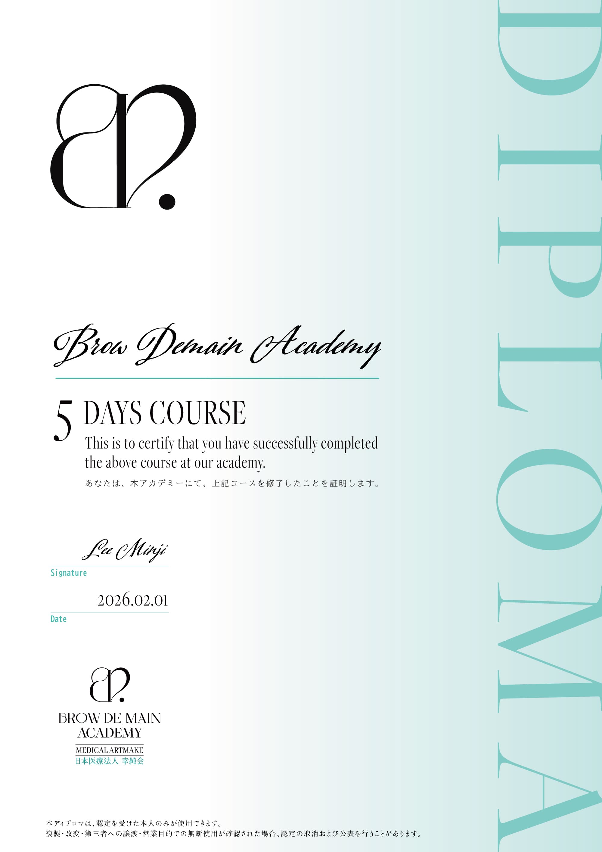 BROW DE MAIN ACADEMYのディプロマ(修了証)を発行。 -